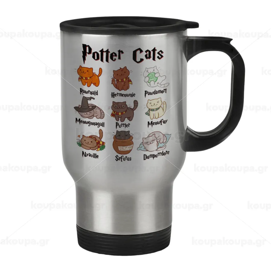 Potter Cats, Κούπα ταξιδιού ανοξείδωτη με καπάκι, διπλού τοιχώματος (θερμό) 450ml