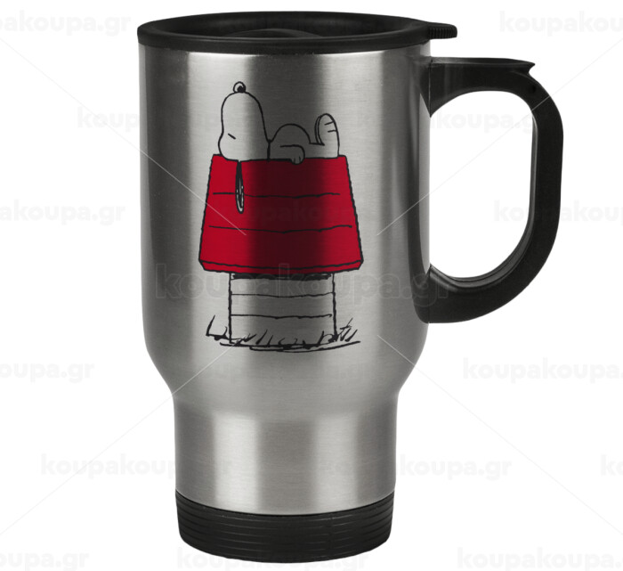 Το σπίτι του snoopy, Κούπα ταξιδιού ανοξείδωτη με καπάκι, διπλού τοιχώματος (θερμό) 450ml