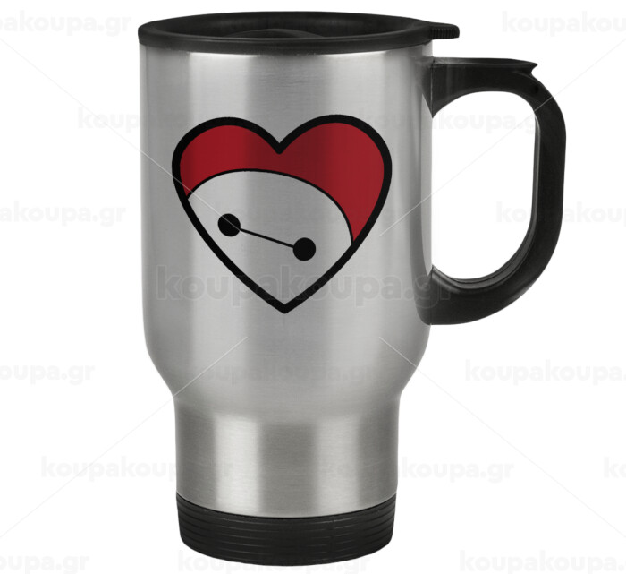 Baymax heart, Κούπα ταξιδιού ανοξείδωτη με καπάκι, διπλού τοιχώματος (θερμό) 450ml