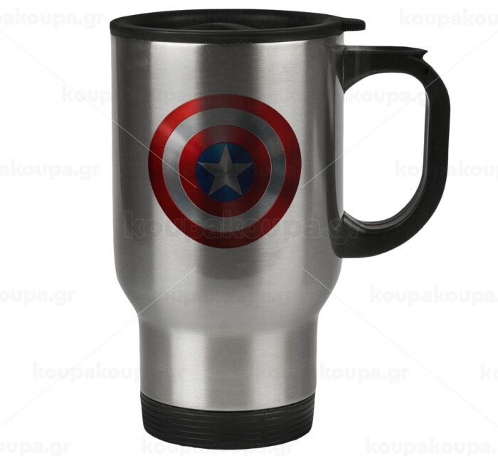 Captain America, Κούπα ταξιδιού ανοξείδωτη με καπάκι, διπλού τοιχώματος (θερμό) 450ml