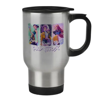 HUNTR/X K-pop girl group, Κούπα ταξιδιού ανοξείδωτη με καπάκι, διπλού τοιχώματος (θερμό) 450ml