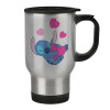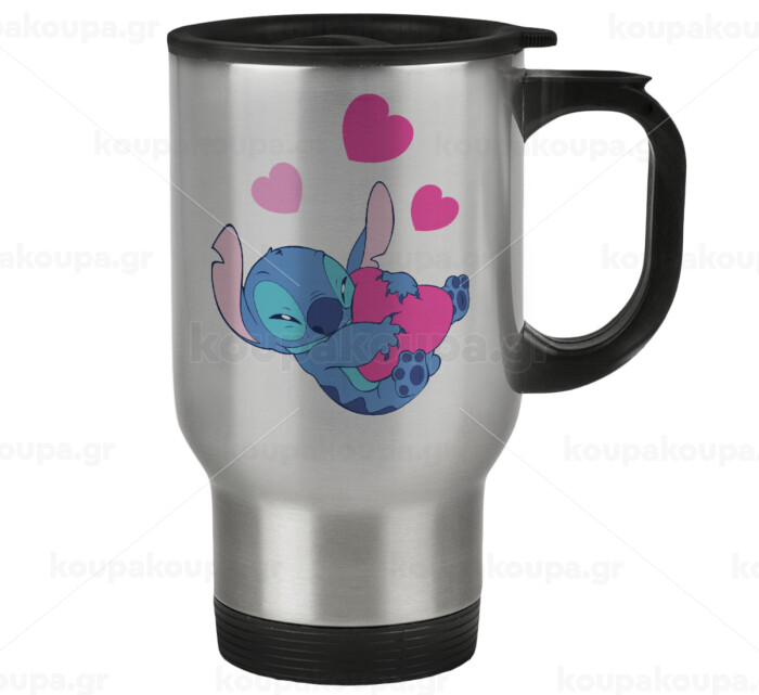Lilo & Stitch hugs and hearts, Κούπα ταξιδιού ανοξείδωτη με καπάκι, διπλού τοιχώματος (θερμό) 450ml
