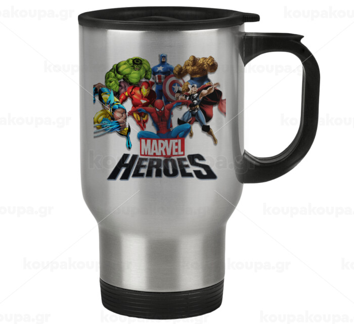 MARVEL heroes, Κούπα ταξιδιού ανοξείδωτη με καπάκι, διπλού τοιχώματος (θερμό) 450ml
