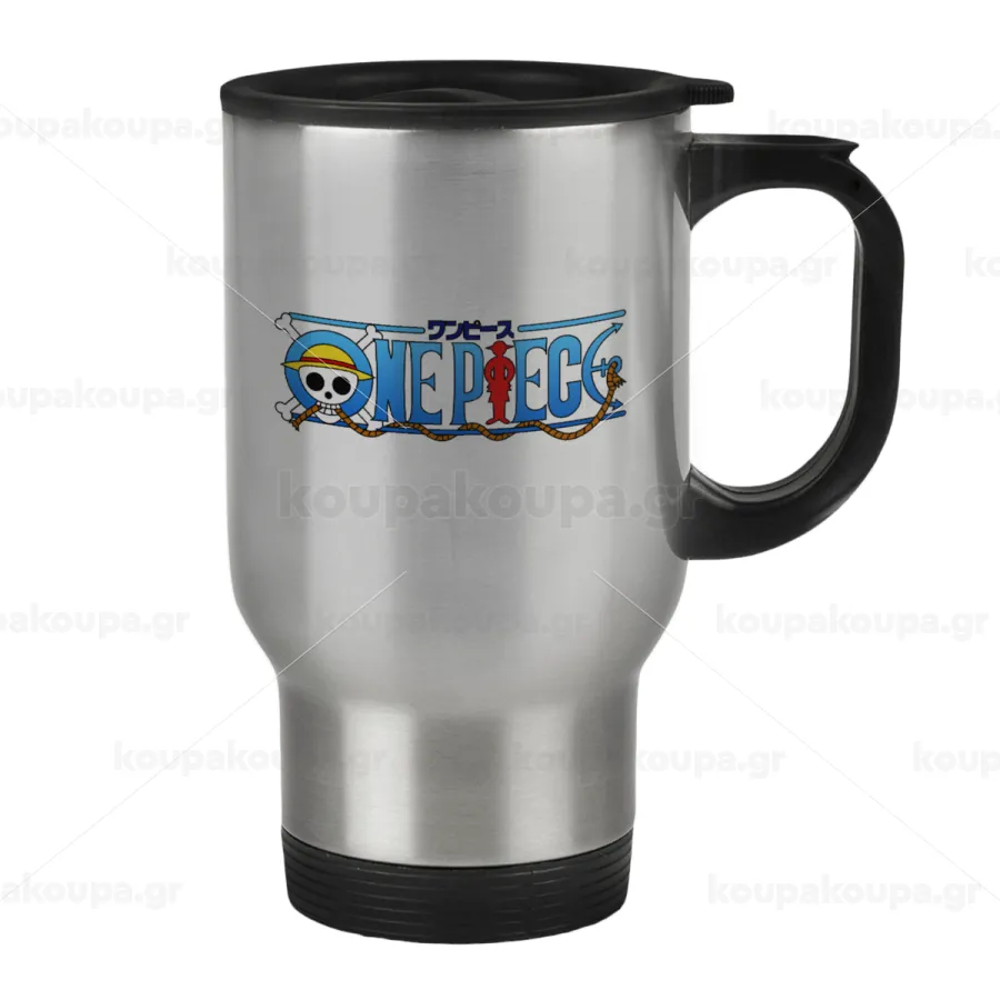 Onepiece logo, Κούπα ταξιδιού ανοξείδωτη με καπάκι, διπλού τοιχώματος (θερμό) 450ml