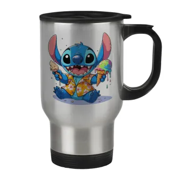 Stitch Ice cream, Κούπα ταξιδιού ανοξείδωτη με καπάκι, διπλού τοιχώματος (θερμό) 450ml