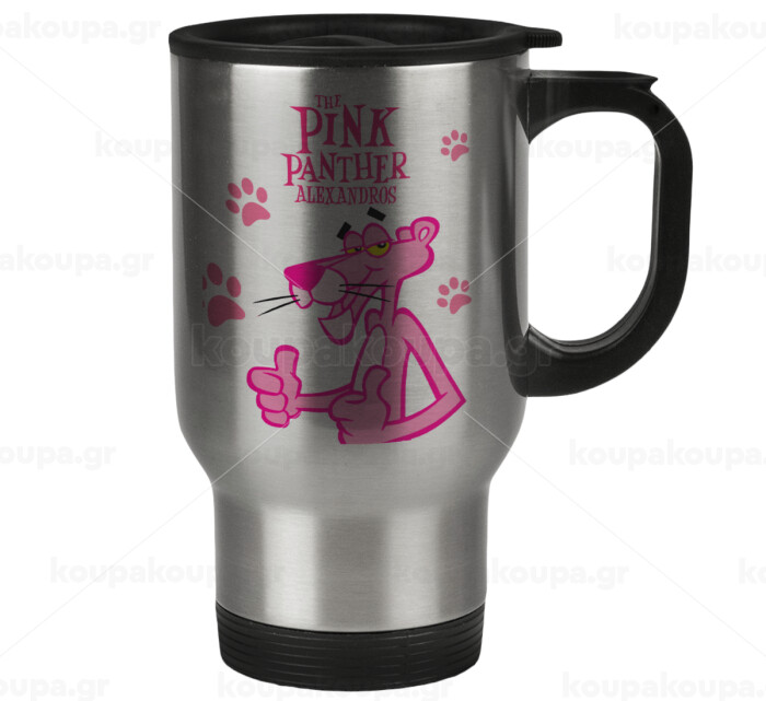 The pink panther, Κούπα ταξιδιού ανοξείδωτη με καπάκι, διπλού τοιχώματος (θερμό) 450ml