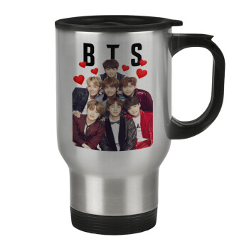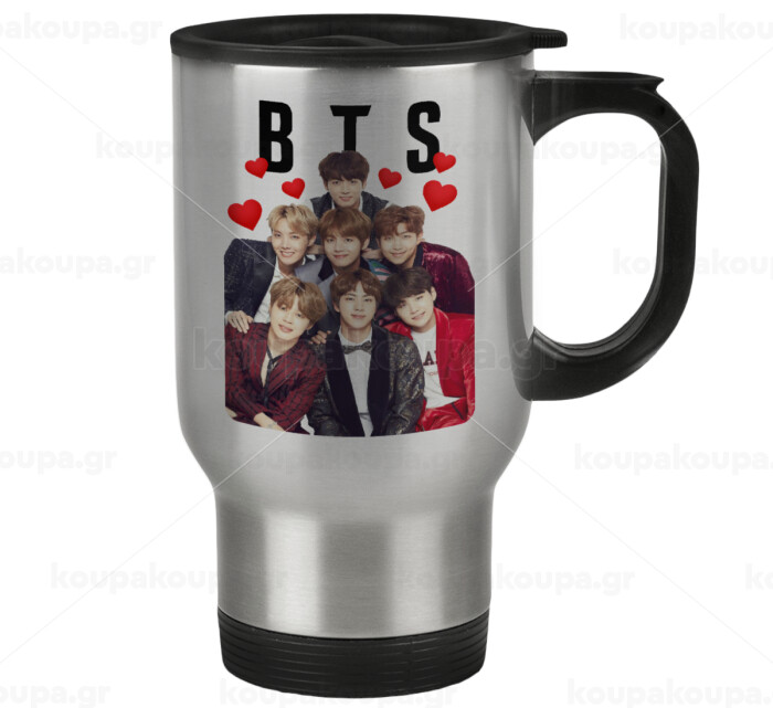 BTS hearts, Κούπα ταξιδιού ανοξείδωτη με καπάκι, διπλού τοιχώματος (θερμό) 450ml