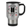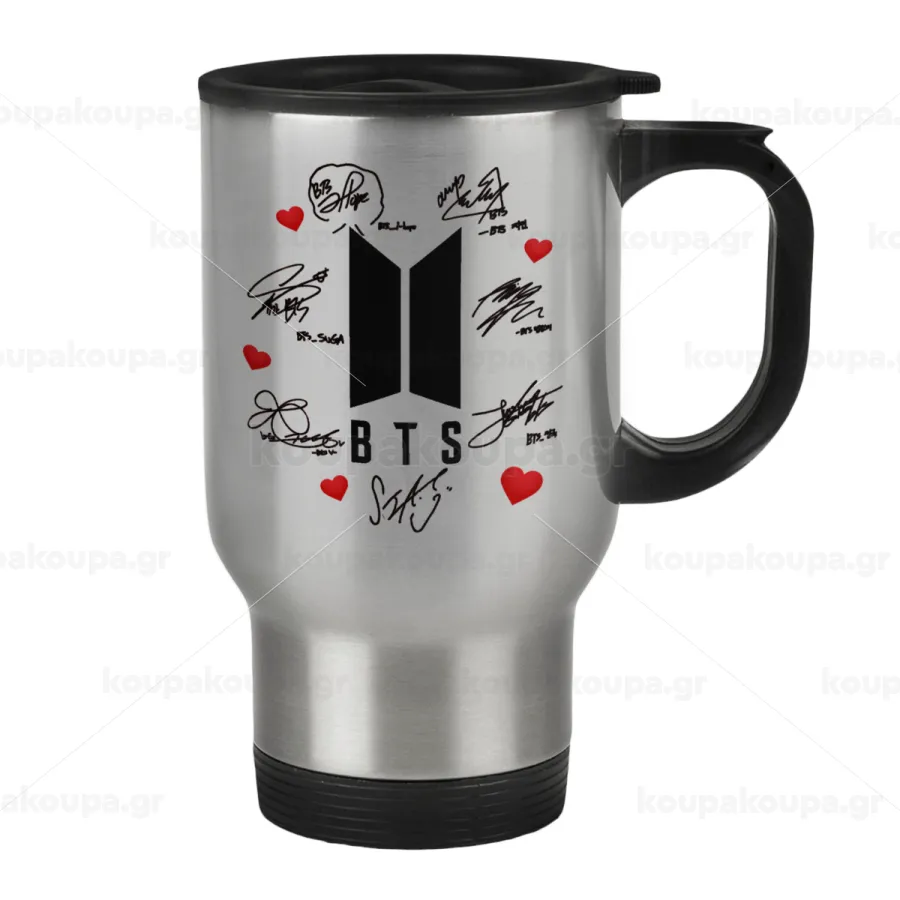 BTS signs, Κούπα ταξιδιού ανοξείδωτη με καπάκι, διπλού τοιχώματος (θερμό) 450ml