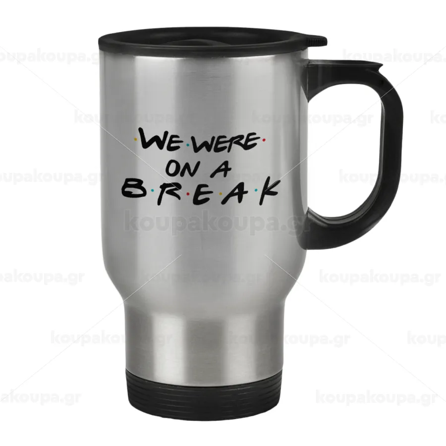 Friends we were on a break, Κούπα ταξιδιού ανοξείδωτη με καπάκι, διπλού τοιχώματος (θερμό) 450ml