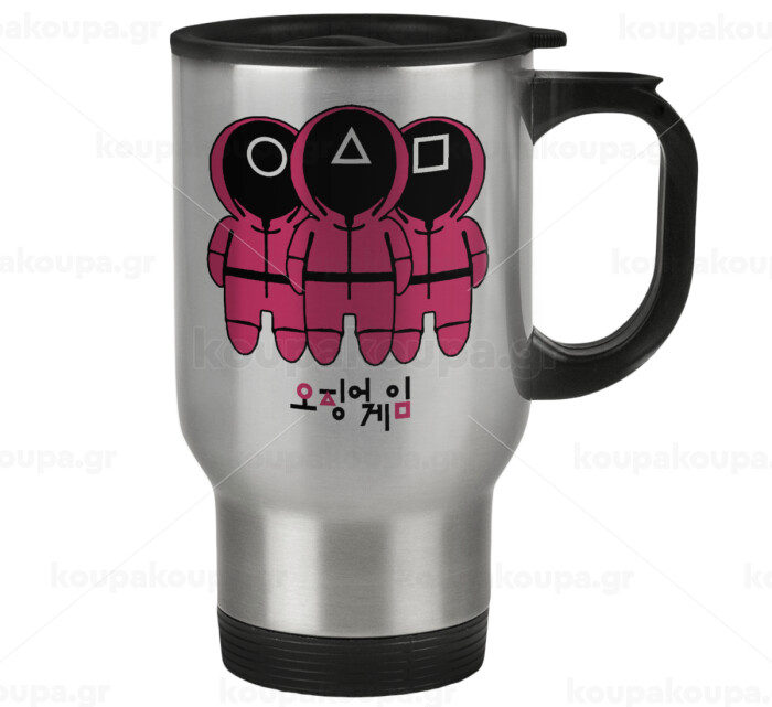 The squid game, Κούπα ταξιδιού ανοξείδωτη με καπάκι, διπλού τοιχώματος (θερμό) 450ml
