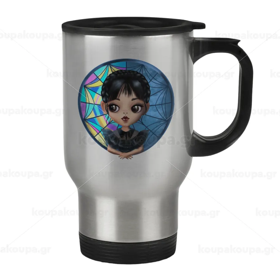 Wednesday big eyes, Κούπα ταξιδιού ανοξείδωτη με καπάκι, διπλού τοιχώματος (θερμό) 450ml
