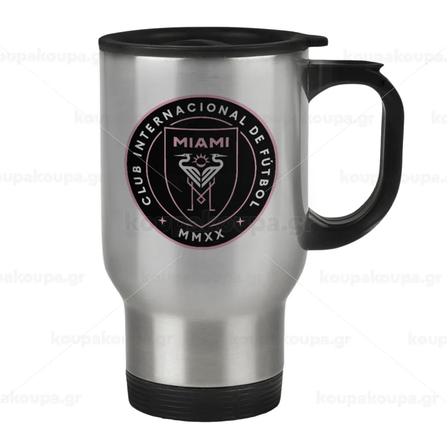 Ίντερ Μαϊάμι (Inter Miami CF), Κούπα ταξιδιού ανοξείδωτη με καπάκι, διπλού τοιχώματος (θερμό) 450ml