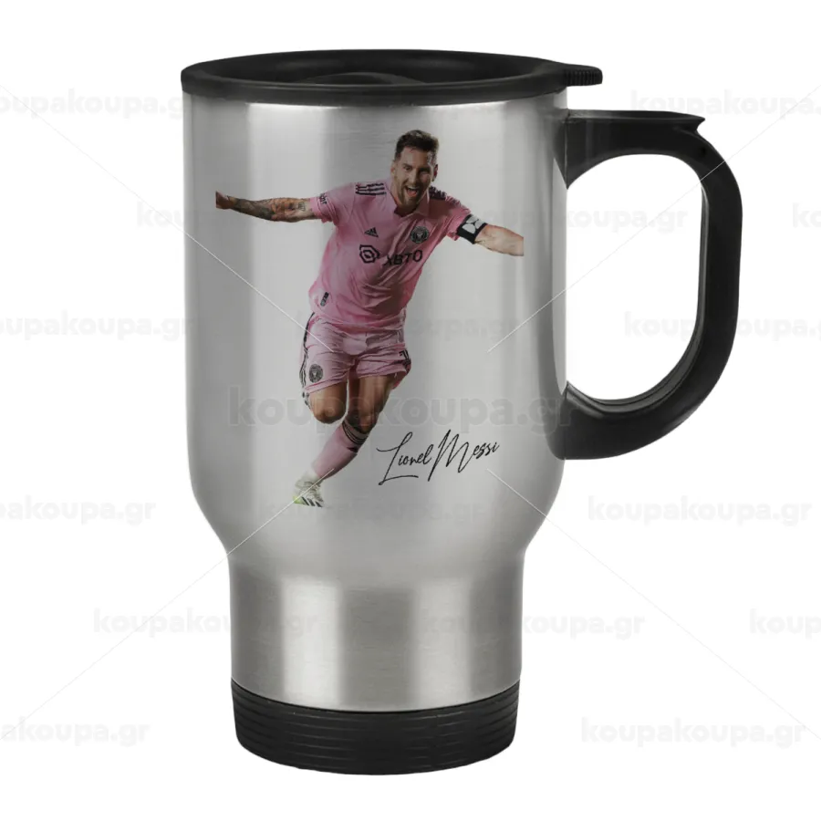 Lionel Messi inter miami jersey, Κούπα ταξιδιού ανοξείδωτη με καπάκι, διπλού τοιχώματος (θερμό) 450ml