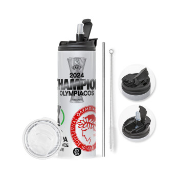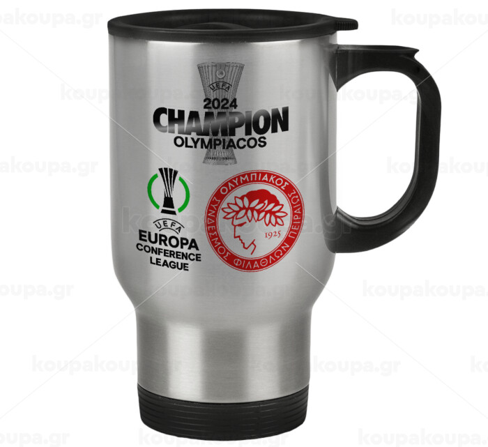 Olympiacos UEFA Europa Conference League Champion 2024, Κούπα ταξιδιού ανοξείδωτη με καπάκι, διπλού τοιχώματος (θερμό) 450ml