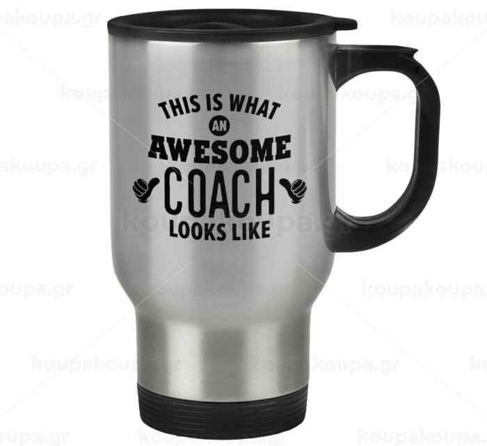 This is what an awesome COACH looks like!, Κούπα ταξιδιού ανοξείδωτη με καπάκι, διπλού τοιχώματος (θερμό) 450ml
