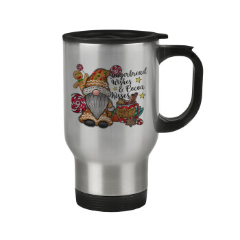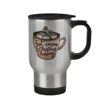 Joy, Peace, Believe, Hot Cocoa, Carols, Κούπα ταξιδιού ανοξείδωτη με καπάκι, διπλού τοιχώματος (θερμό) 450ml