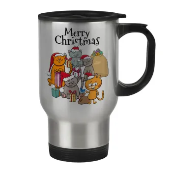 Merry Christmas Cats, Κούπα ταξιδιού ανοξείδωτη με καπάκι, διπλού τοιχώματος (θερμό) 450ml