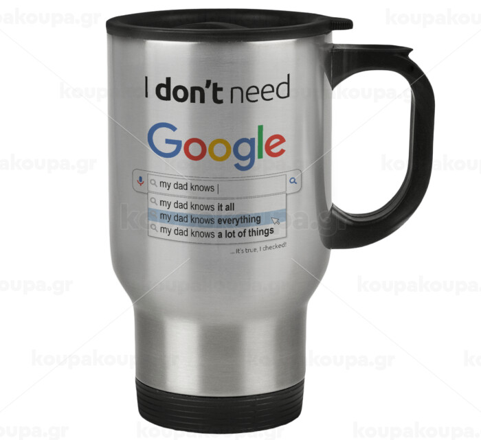 I don't need Google my dad..., Κούπα ταξιδιού ανοξείδωτη με καπάκι, διπλού τοιχώματος (θερμό) 450ml