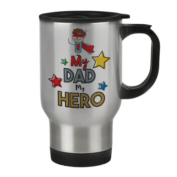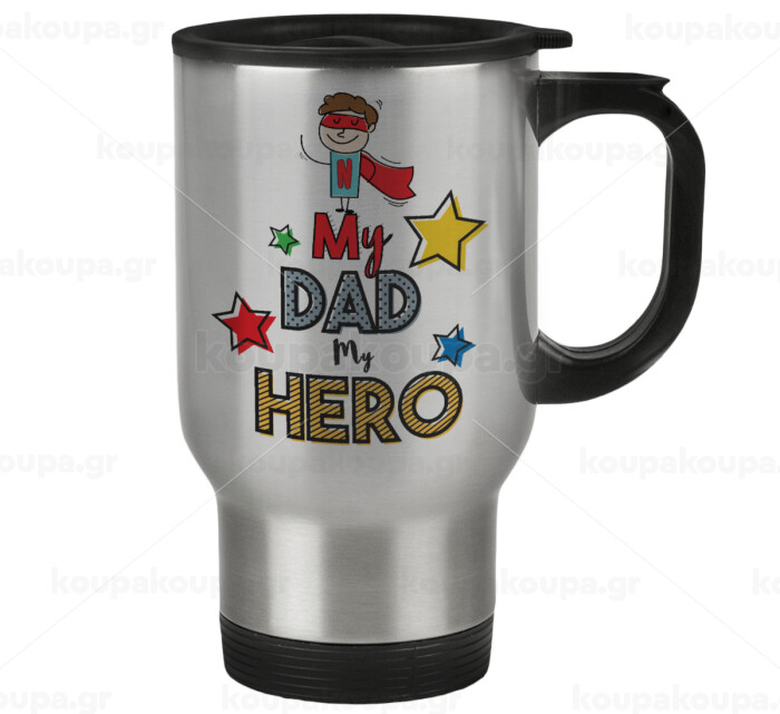 My Dad, my Hero!!!, Κούπα ταξιδιού ανοξείδωτη με καπάκι, διπλού τοιχώματος (θερμό) 450ml