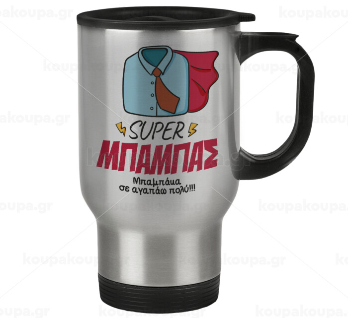 SUPER ΜΠΑΜΠΑΣ, Κούπα ταξιδιού ανοξείδωτη με καπάκι, διπλού τοιχώματος (θερμό) 450ml
