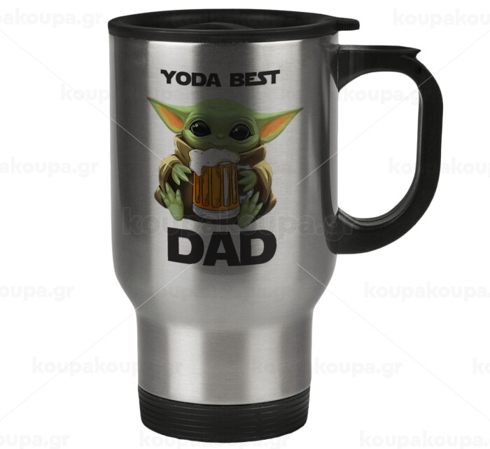 Yoda Best Dad, Κούπα ταξιδιού ανοξείδωτη με καπάκι, διπλού τοιχώματος (θερμό) 450ml