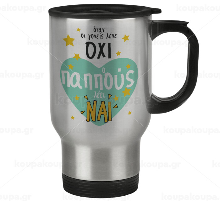 Όταν οι γονείς λένε ΟΧΙ, ο παππούς λέει ΝΑΙ, Κούπα ταξιδιού ανοξείδωτη με καπάκι, διπλού τοιχώματος (θερμό) 450ml