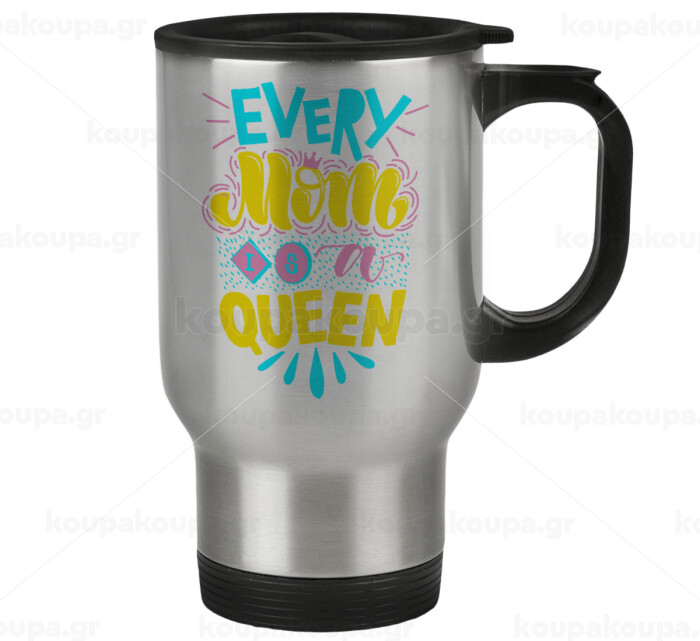 Every mom is a Queen, Κούπα ταξιδιού ανοξείδωτη με καπάκι, διπλού τοιχώματος (θερμό) 450ml