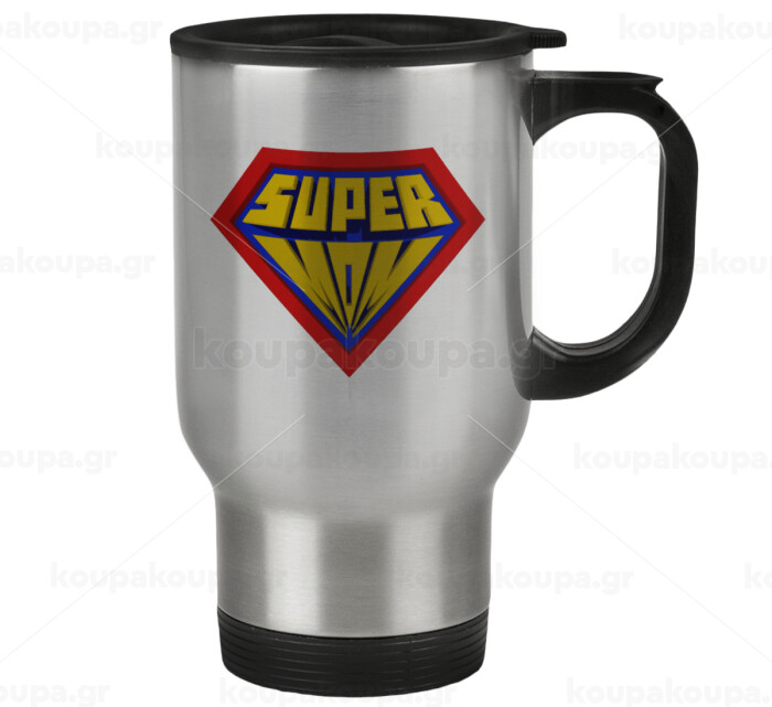 Super Mom 3D, Κούπα ταξιδιού ανοξείδωτη με καπάκι, διπλού τοιχώματος (θερμό) 450ml