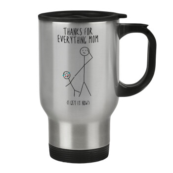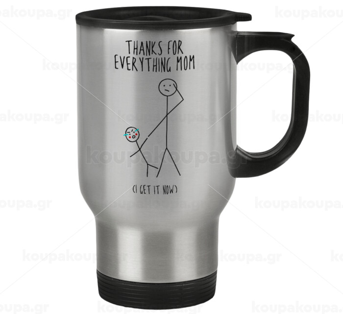 Thanks for everything mom, Κούπα ταξιδιού ανοξείδωτη με καπάκι, διπλού τοιχώματος (θερμό) 450ml