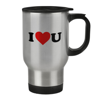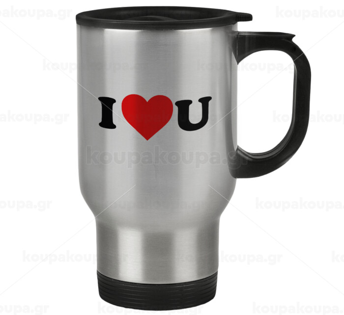 I ❤️ U, Κούπα ταξιδιού ανοξείδωτη με καπάκι, διπλού τοιχώματος (θερμό) 450ml