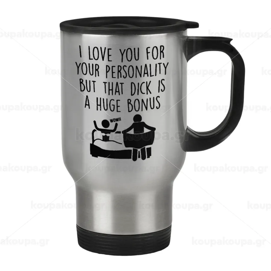 I Love You for Your Personality But that D... Is a Huge Bonus , Κούπα ταξιδιού ανοξείδωτη με καπάκι, διπλού τοιχώματος (θερμό) 450ml