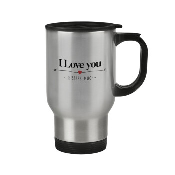 I Love you thisssss much, Κούπα ταξιδιού ανοξείδωτη με καπάκι, διπλού τοιχώματος (θερμό) 450ml