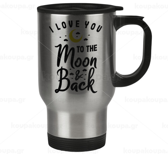 I love you to the moon and back, Κούπα ταξιδιού ανοξείδωτη με καπάκι, διπλού τοιχώματος (θερμό) 450ml