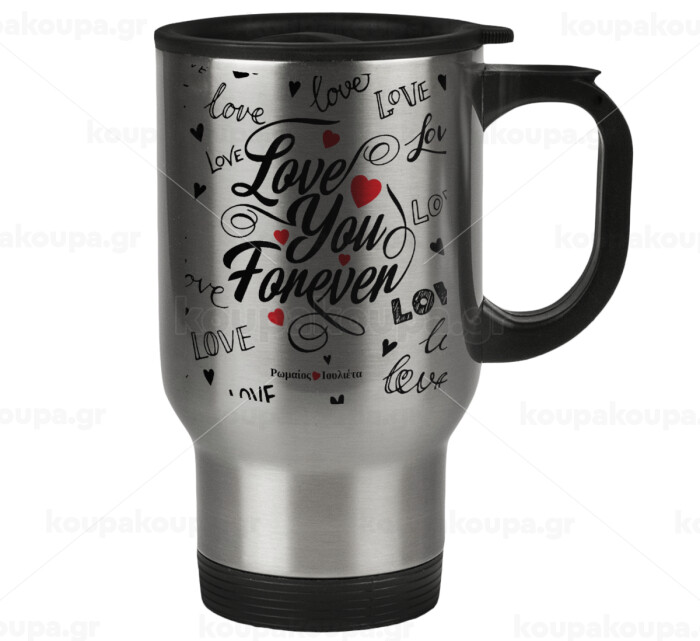 Love You Forever, Κούπα ταξιδιού ανοξείδωτη με καπάκι, διπλού τοιχώματος (θερμό) 450ml