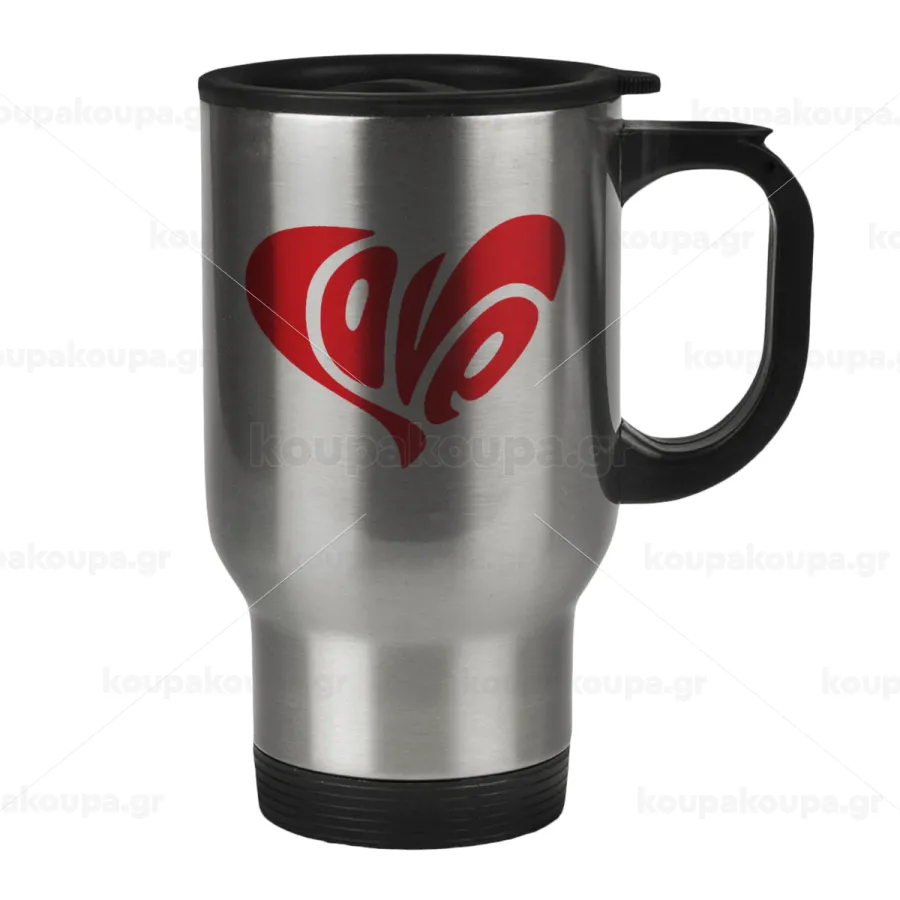 Love, Κούπα ταξιδιού ανοξείδωτη με καπάκι, διπλού τοιχώματος (θερμό) 450ml