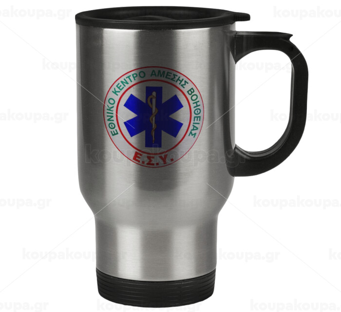 ΕΚΑΒ, Κούπα ταξιδιού ανοξείδωτη με καπάκι, διπλού τοιχώματος (θερμό) 450ml