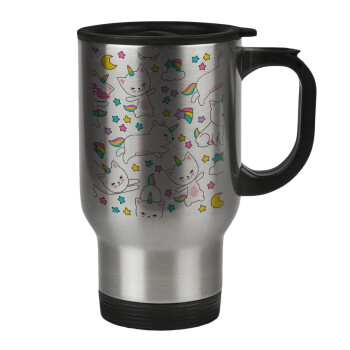 Cats unicorns, Κούπα ταξιδιού ανοξείδωτη με καπάκι, διπλού τοιχώματος (θερμό) 450ml