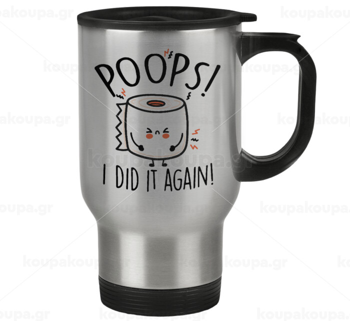 Poops!...I Did It Again, Κούπα ταξιδιού ανοξείδωτη με καπάκι, διπλού τοιχώματος (θερμό) 450ml