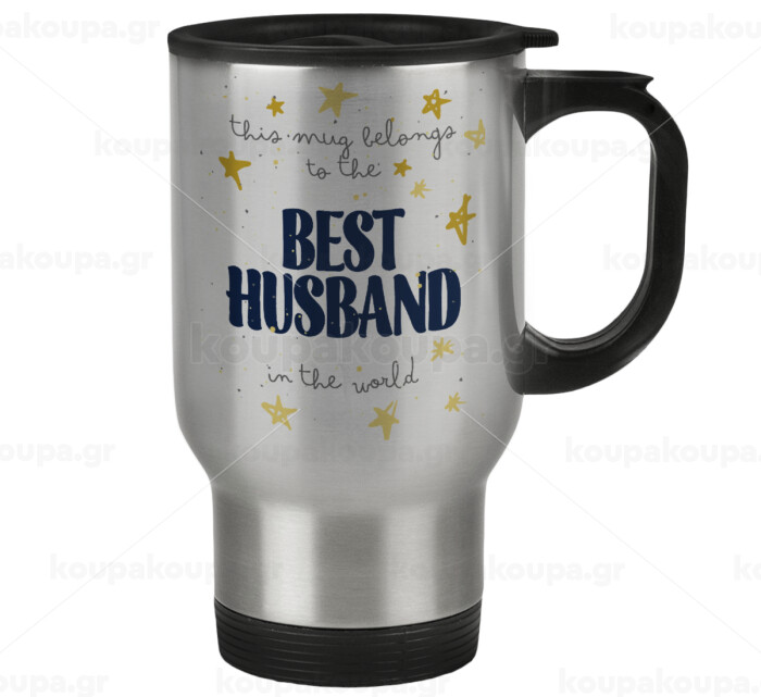 This mug belongs to the BEST HUSBAND in the world!, Κούπα ταξιδιού ανοξείδωτη με καπάκι, διπλού τοιχώματος (θερμό) 450ml