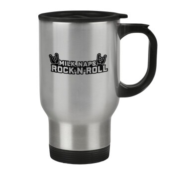 Milk, Naps, Rock N Roll, Κούπα ταξιδιού ανοξείδωτη με καπάκι, διπλού τοιχώματος (θερμό) 450ml