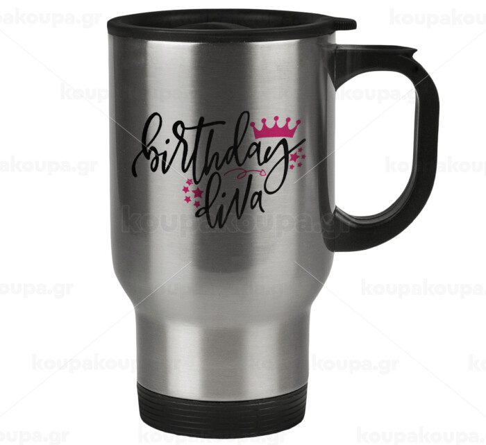 Birthday Diva queen, Κούπα ταξιδιού ανοξείδωτη με καπάκι, διπλού τοιχώματος (θερμό) 450ml