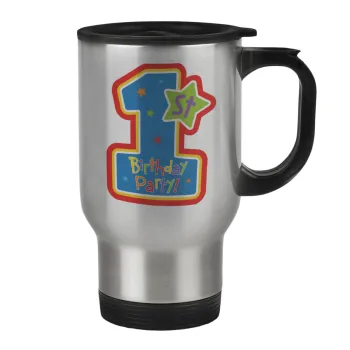 Happy 1st Birthday, Κούπα ταξιδιού ανοξείδωτη με καπάκι, διπλού τοιχώματος (θερμό) 450ml