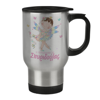 I Love ΝΟΝΟΣ, Κούπα ταξιδιού ανοξείδωτη με καπάκι, διπλού τοιχώματος (θερμό) 450ml