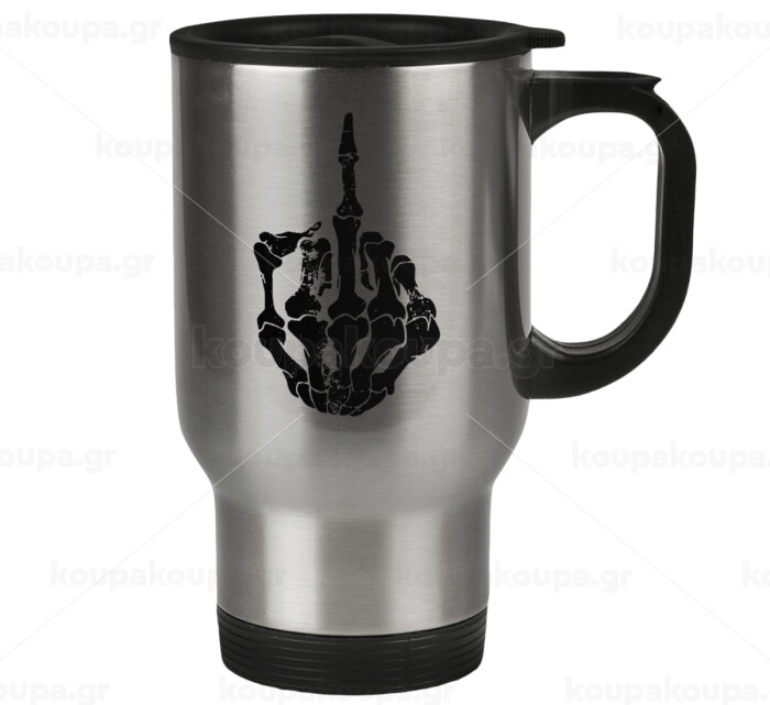 Middle finger, Κούπα ταξιδιού ανοξείδωτη με καπάκι, διπλού τοιχώματος (θερμό) 450ml