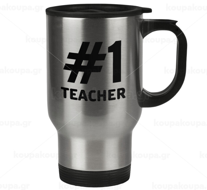 #1 teacher, Κούπα ταξιδιού ανοξείδωτη με καπάκι, διπλού τοιχώματος (θερμό) 450ml