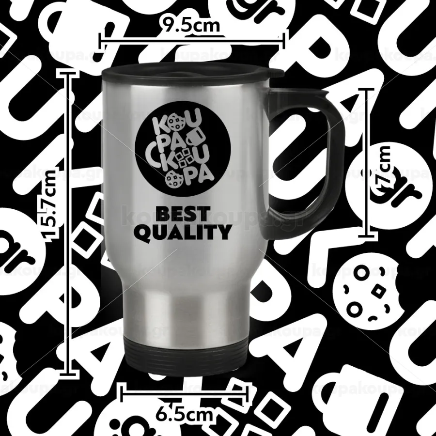 Κούπα ταξιδιού θερμό διπλού τοιχώματος από ανοξείδωτο ατσάλι συνιστάται σε όποιον θέλει να απολαύσει το τσάι ή τον καφέ του με σωστό οικολογικό αποτύπωμα, έχει λαβή για το χέρι, είναι ανθεκτική, ελαφριά, και κάθεται τέλεια στις θήκες ποτηριών του αυτοκινήτου. Το καπάκι διαθέτει λαβή περιστροφής 45° για άνοιγμα και κλείσιμο της οπής για το καλαμάκι ή της πόσης.