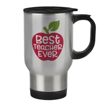 best teacher ever, apple!, Κούπα ταξιδιού ανοξείδωτη με καπάκι, διπλού τοιχώματος (θερμό) 450ml