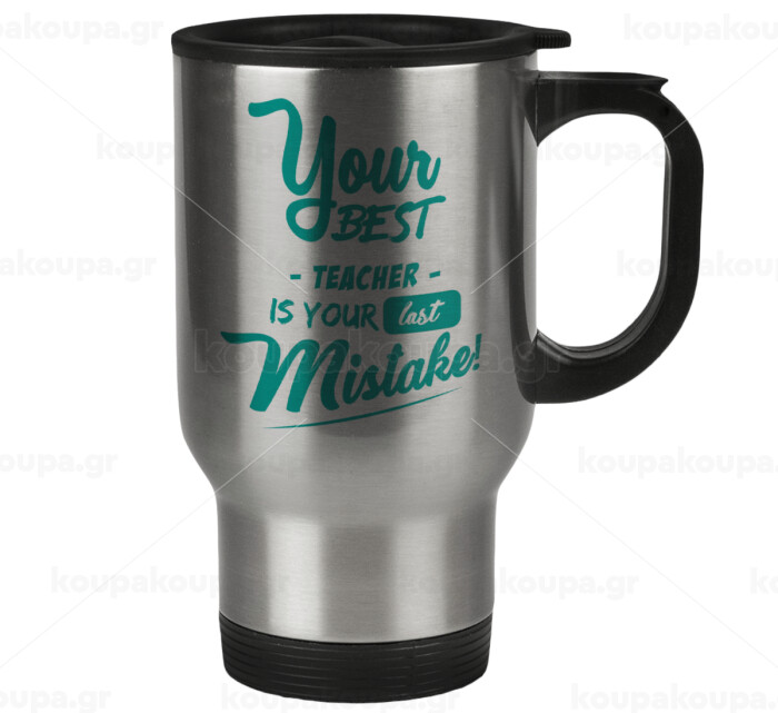 Your best teacher is your last mistake, Κούπα ταξιδιού ανοξείδωτη με καπάκι, διπλού τοιχώματος (θερμό) 450ml