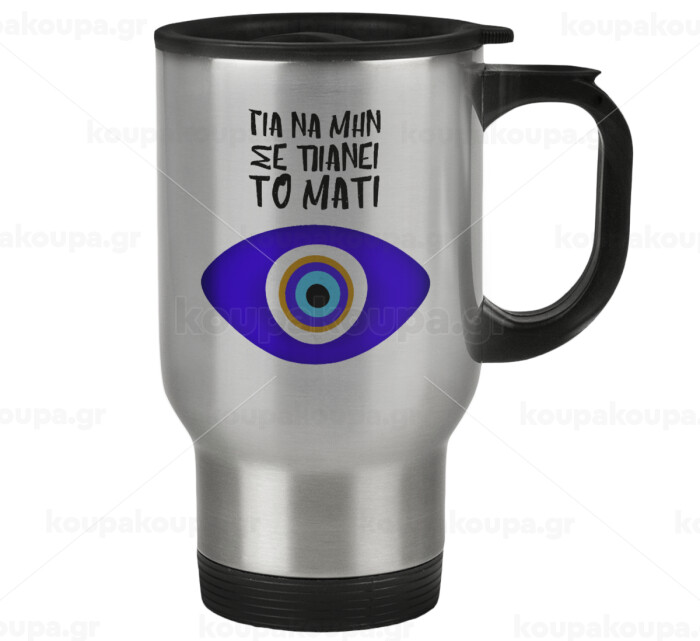 Για να μην σε πιάνει το μάτι, Κούπα ταξιδιού ανοξείδωτη με καπάκι, διπλού τοιχώματος (θερμό) 450ml