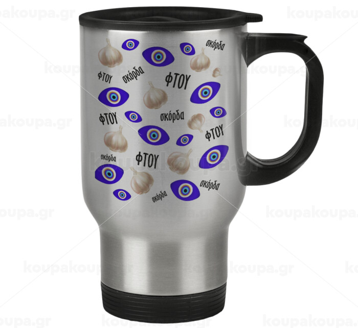 Φτου, φτου, σκόρδα!!!, Κούπα ταξιδιού ανοξείδωτη με καπάκι, διπλού τοιχώματος (θερμό) 450ml